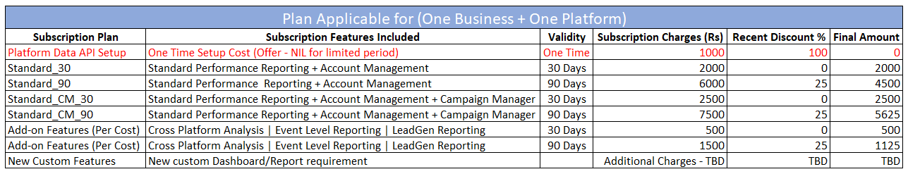 (Dashboard starts at just Rs. 595/- PM "15 days free trial" Product Subscription Plan) to manage end-to-end campaigns performance with drill down analytics to help optimize the campaigns and maximize ROI.