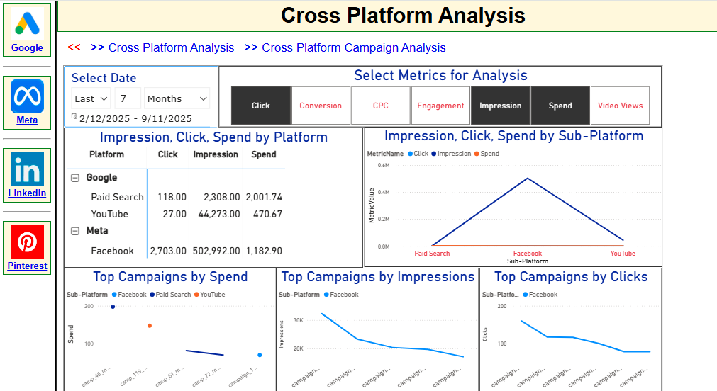 - Cross Platform (Google vs YouTube vs Meta vs Others) Campaigns Performance Analysis